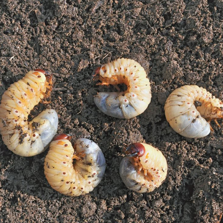 An application of a suitable granular or liquid insecticide containing any of the following actives – Bifenthrin or Chlorpyrifos or Imidacloprid, will assist in eradicating these grubs from your soil. Check labels of suitable lawn grub/beetle killers on shelves.